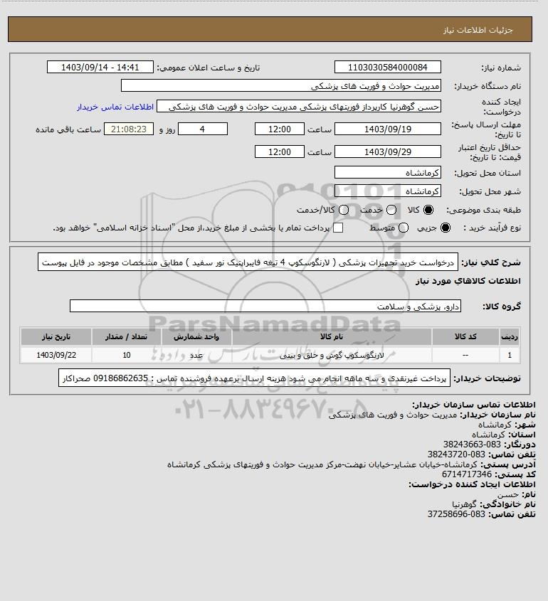 استعلام درخواست خرید تجهیزات پزشکی ( لارنگوسکوپ 4 تیغه فایبراپتیک نور سفید ) مطابق مشخصات موجود در فایل پیوست, استعلام درخواست خرید تجهیزات پزشکی ( لارنگوسکوپ 4 تیغه فایبراپتیک نور سفید ) مطابق مشخصات موجود در فایل پیوست