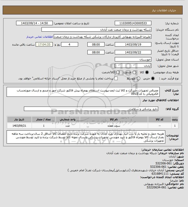 نام دستگاه خریدار:شبکه بهداشت و درمان صنعت نفت آبادان