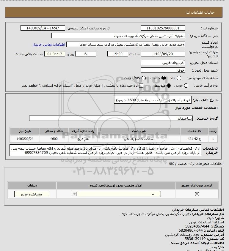 استعلام تهیه و اجرای زیرسازی معابر به متراژ 4600 مترمربع, استعلام تهیه و اجرای زیرسازی معابر به متراژ 4600 مترمربع