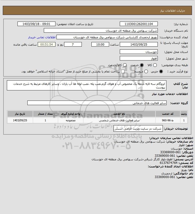 شماره نیاز: 1103001262001104