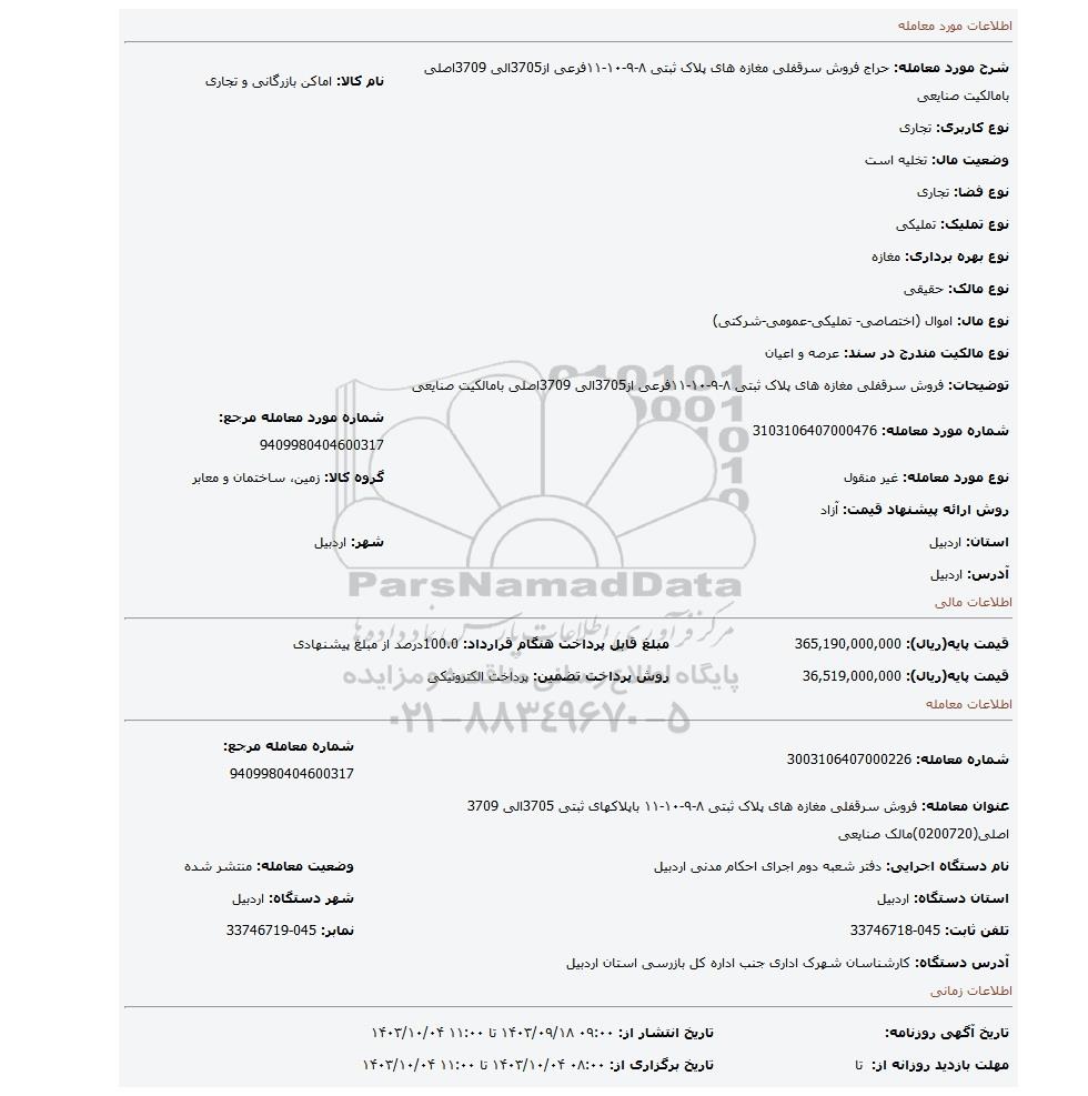 قیمت پایه(ریال): 36,519,000,000روش پرداخت تضمین: پرداخت الکترونیکی