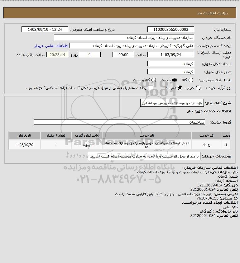 نام دستگاه خریدار:سازمان مدیریت و برنامه ریزی استان کرمان