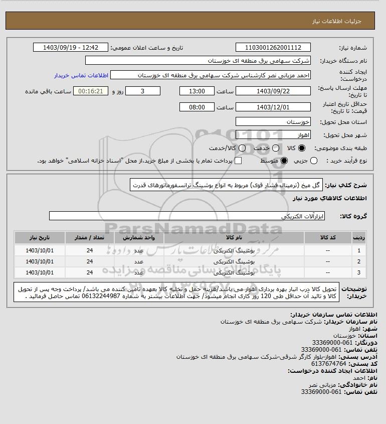 نام دستگاه خریدار:شرکت سهامی برق منطقه ای خوزستان