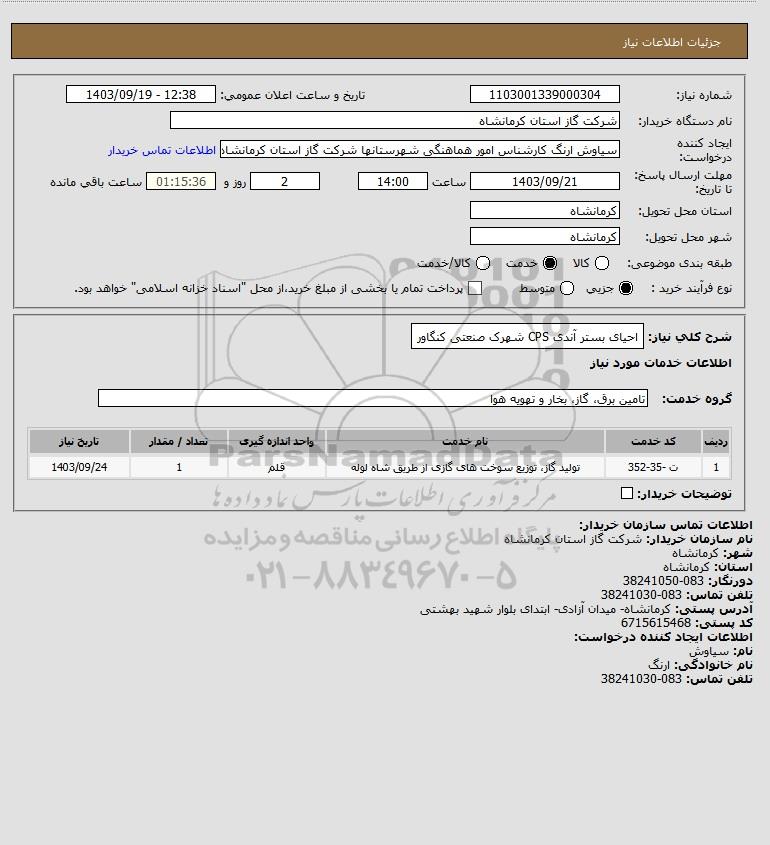 شرح کلی نیاز: احیای بستر آندی CPS شهرک صنعتی کنگاور