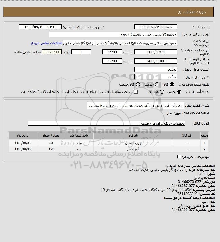 شرح کلی نیاز: رخت آویز استیل و رخت آویز دیواری مطابق با شرح و شروط پیوست