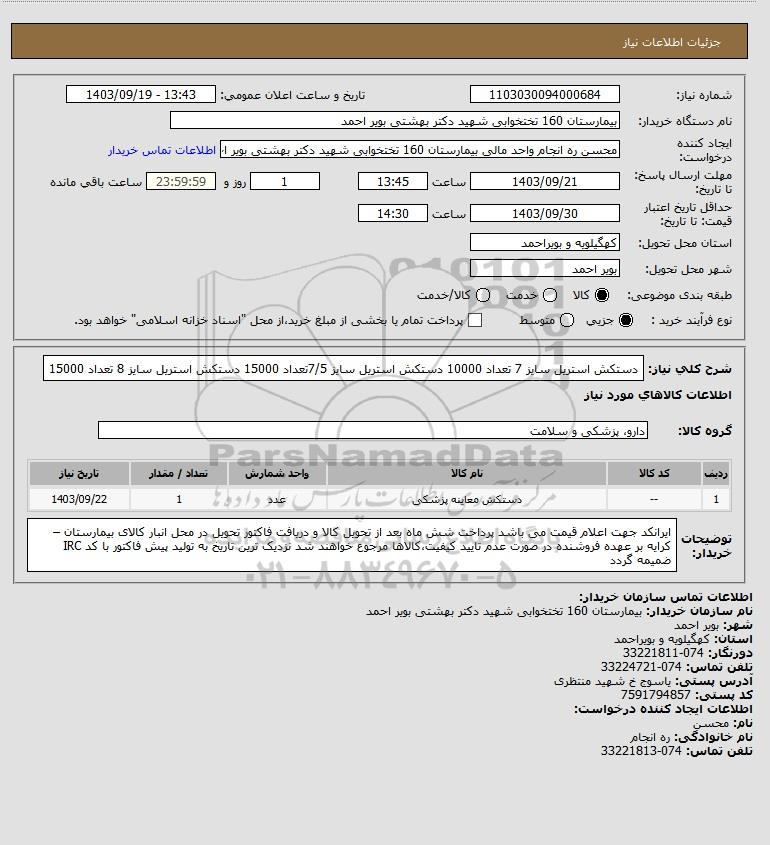 استعلام دستکش استریل سایز 7 تعداد 10000 دستکش استریل سایز 7/5تعداد 15000 دستکش استریل سایز 8 تعداد 15000, استعلام دستکش استریل سایز 7 تعداد 10000 دستکش استریل سایز 7/5تعداد 15000 دستکش استریل سایز 8 تعداد 15000