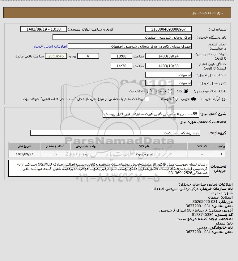 نام دستگاه خریدار:مرکز درمانی شریعتی اصفهان