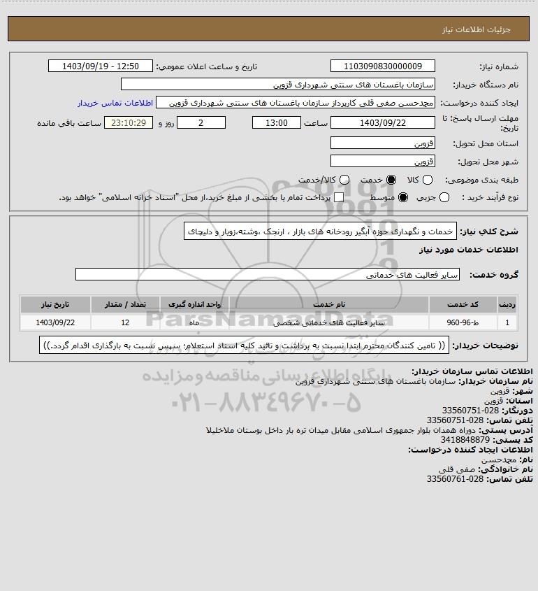 نام دستگاه خریدار:سازمان باغستان های سنتی شهرداری قزوین