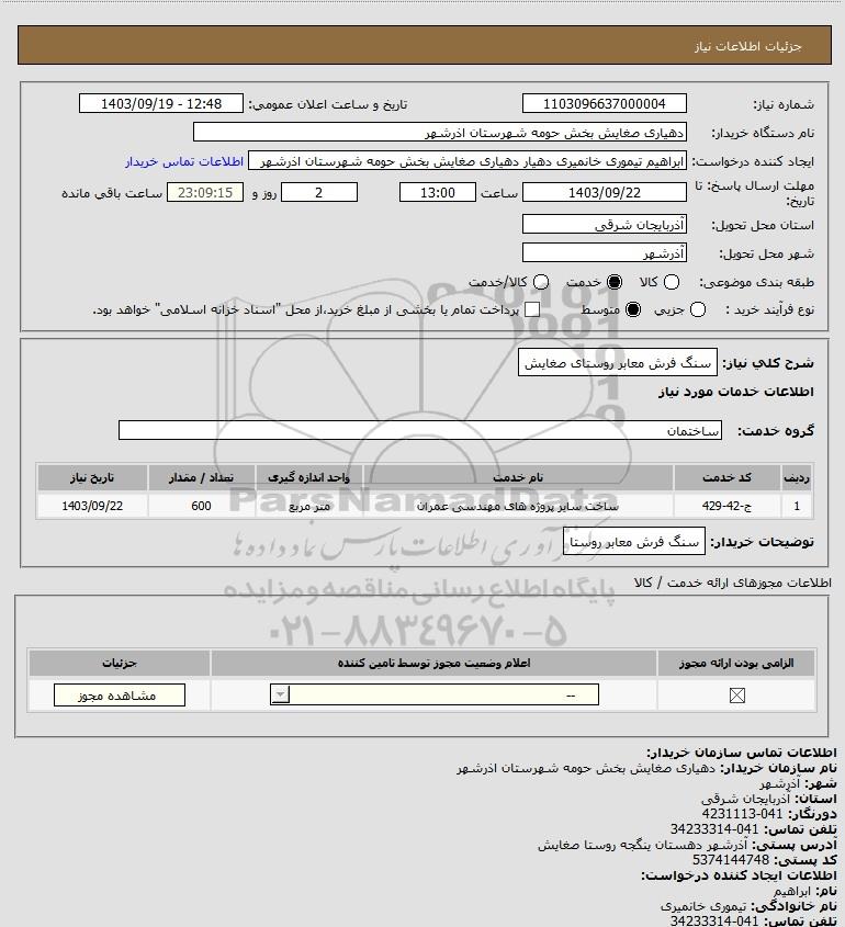 استعلام سنگ فرش معابر روستای صغایش, استعلام سنگ فرش معابر روستای صغایش