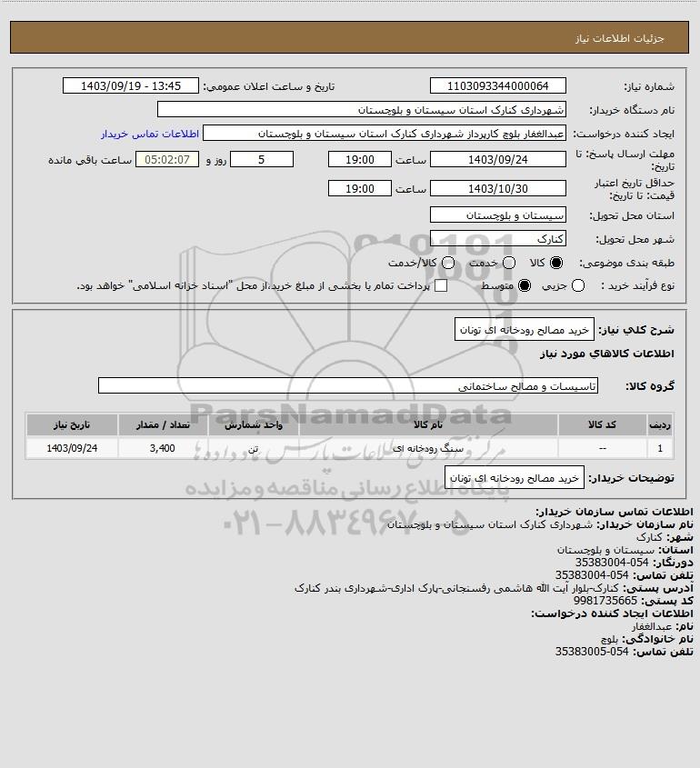 شرح کلی نیاز: خرید مصالح رودخانه ای تونان