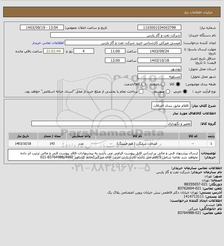 شرح کلی نیاز: اقلام عایق بندی اتصالات