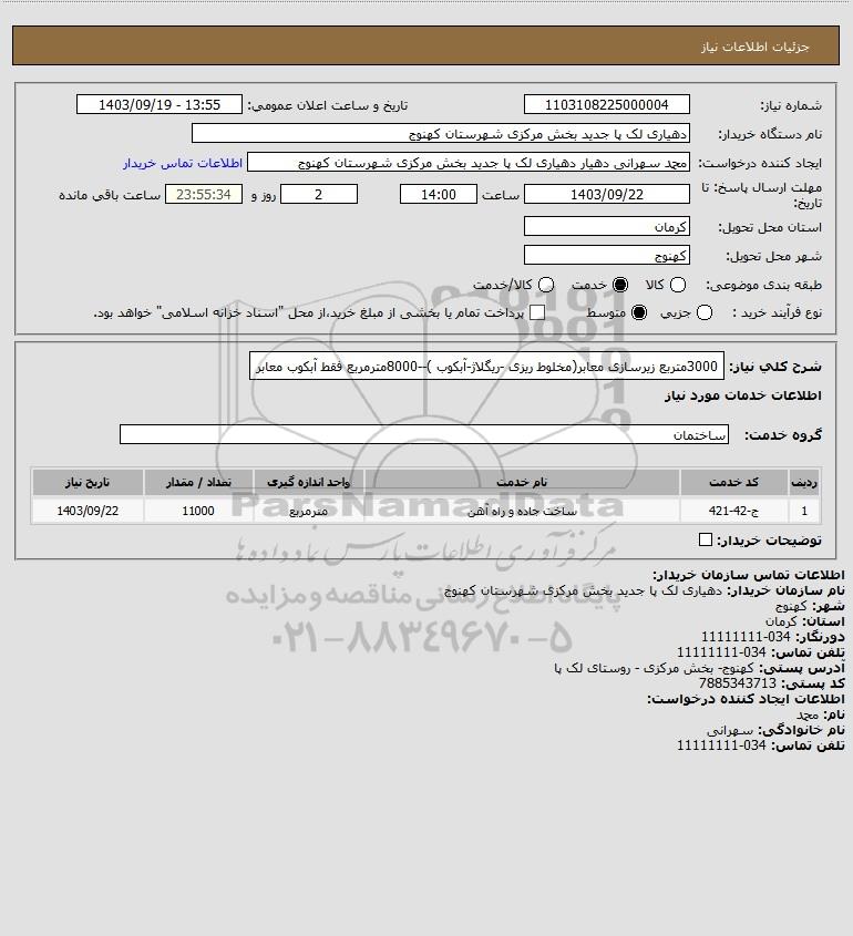 نام دستگاه خریدار:دهیاری لک پا جدید بخش مرکزی شهرستان کهنوج