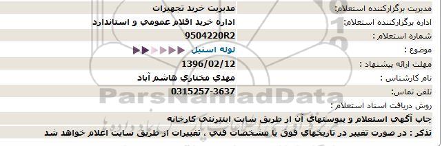 استعلام بها و موضوع استعلام استعلام, استعلام لوله استیل به اطلاع کلیه شرکتها و افراد متخصص واجد شرایط میرساند، آگهی گذار در نظر دارد از طریق استعلام بها، نسبت به انتخاب و دریافت پیشنهادات اقدام نماید. این استعلام با کد آگهی ثبت شده در سامانه خبرگزاری پارس نماد : 838508 منتشر شده است. مشخصات استعلام : تاریخ شروع استعلام: 1396/02/09 آخرین مهلت ارسال پیشنهاد قیمت : 1396/02/12 و محل اجرای پروژه : استان اصفهان میباشد. استعلام قیمت مورد درخواست : استعلام, استعلام لوله استیل با دستهبندیهای تخصصی و گروه های مرتبط : قطعات استنلس استیل, لوله و اتصالات, استعلام اطلاع رسانی میگردد.