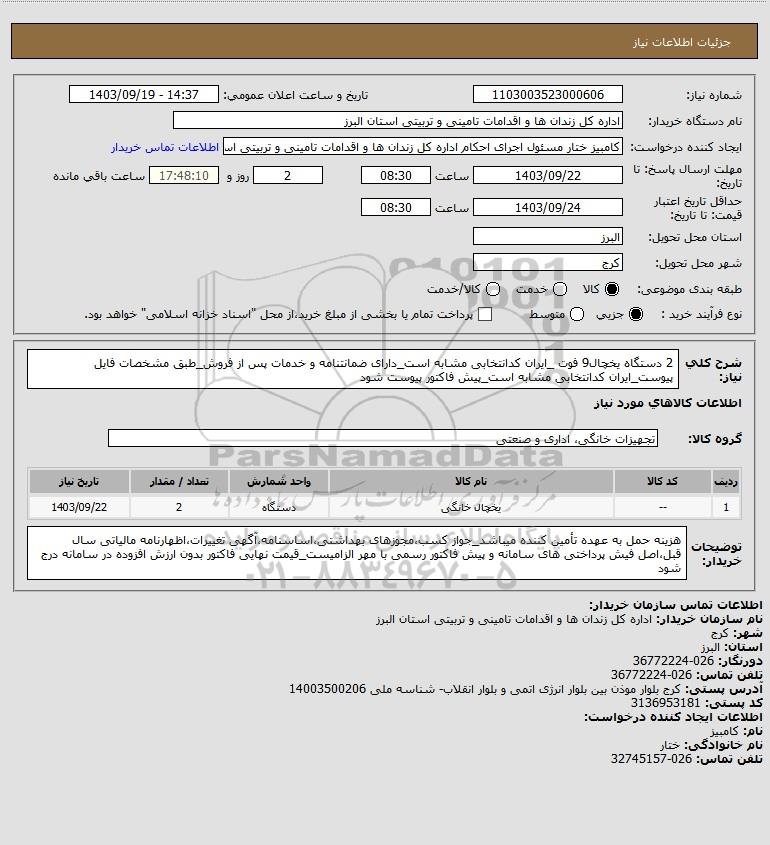 نام دستگاه خریدار:اداره کل زندان ها و اقدامات تامینی و تربیتی استان البرز