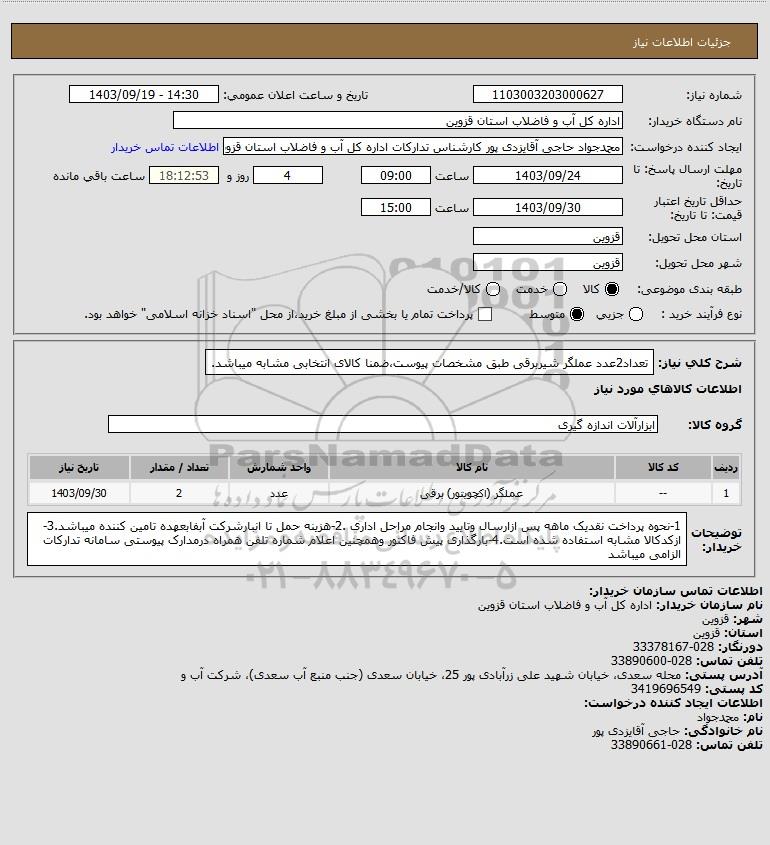نام دستگاه خریدار:اداره کل آب و فاضلاب استان قزوین