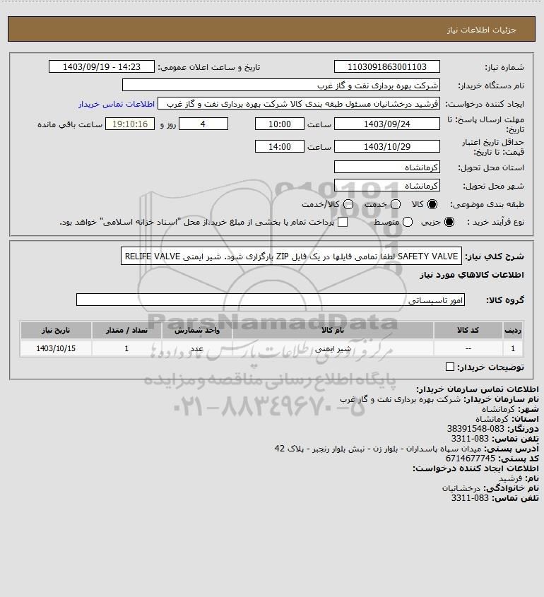 | 1 | -- | شیر ایمنی | عدد | 1 | 1403/10/15 |
