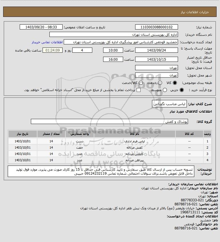 شرح کلی نیاز: لباس مناسب نگهبانی