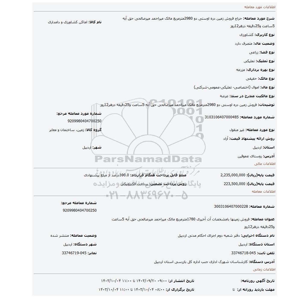 شماره مورد معامله: 3103106407000485 | شماره مورد معامله مرجع: 9209980404700250 | |