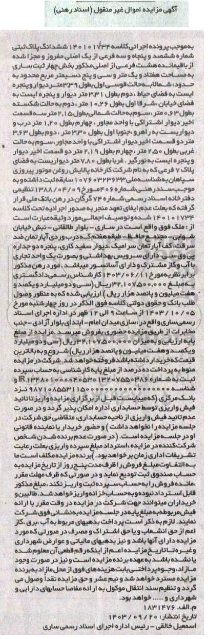 آگهی مزایده اموال غیر منقول (اسناد رهنی)