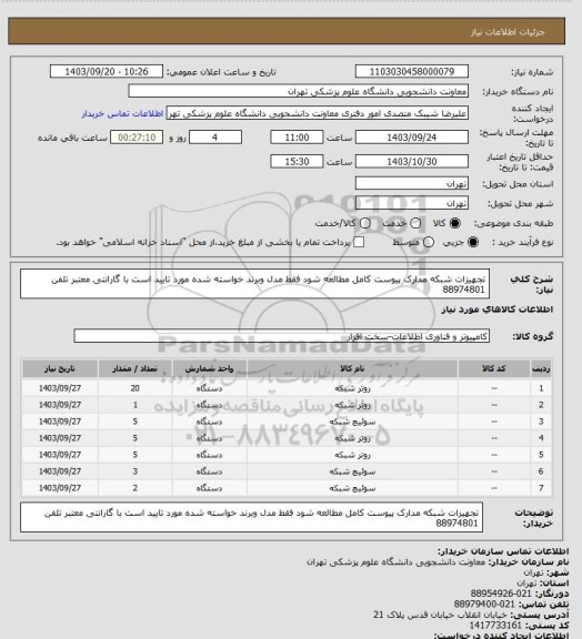 شرح کلی نیاز: تجهیزات شبکه مدارک پیوست کامل مطالعه شود فقط مدل وبرند خواسته شده مورد تایید است با گارانتی معتبر تلفن 88974801