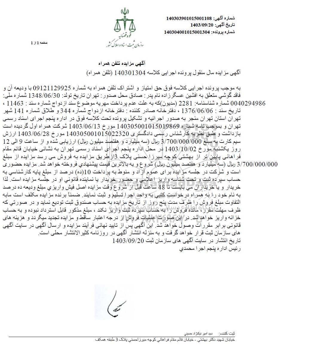 شماره آگهی: 140303901015001108