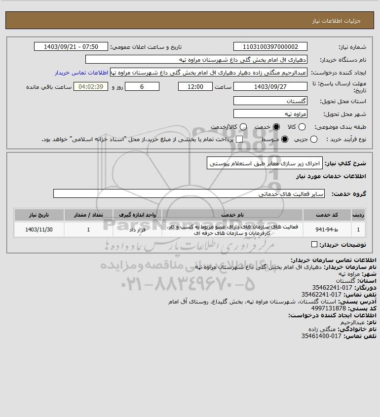 شرح کلی نیاز: اجرای زیر سازی معابر طبق استعلام پیوستی
