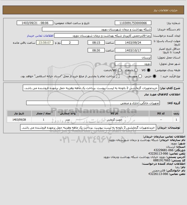 نام دستگاه خریدار:شبکه بهداشت و درمان شهرستان دورود