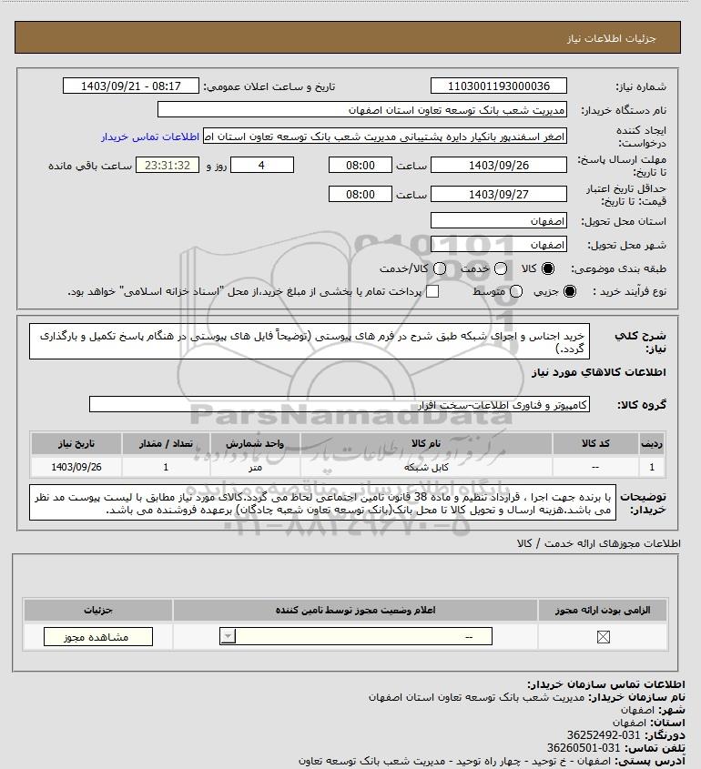 | 1 | -- | کابل شبکه | متر | 1 | 1403/09/26 |