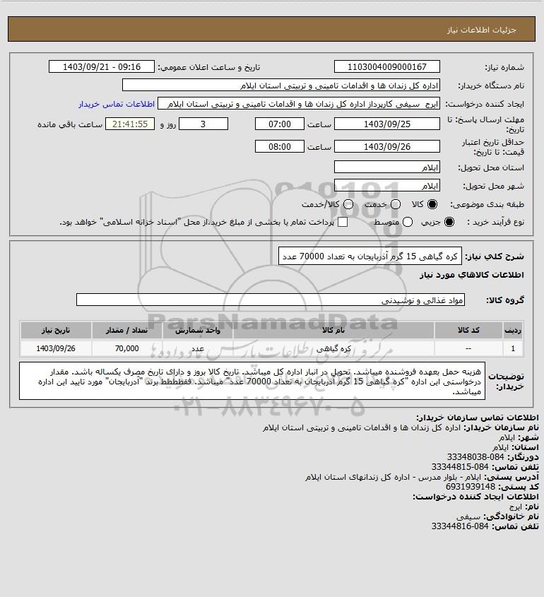 شرح کلی نیاز: کره گیاهی 15 گرم آذربایجان به تعداد 70000 عدد