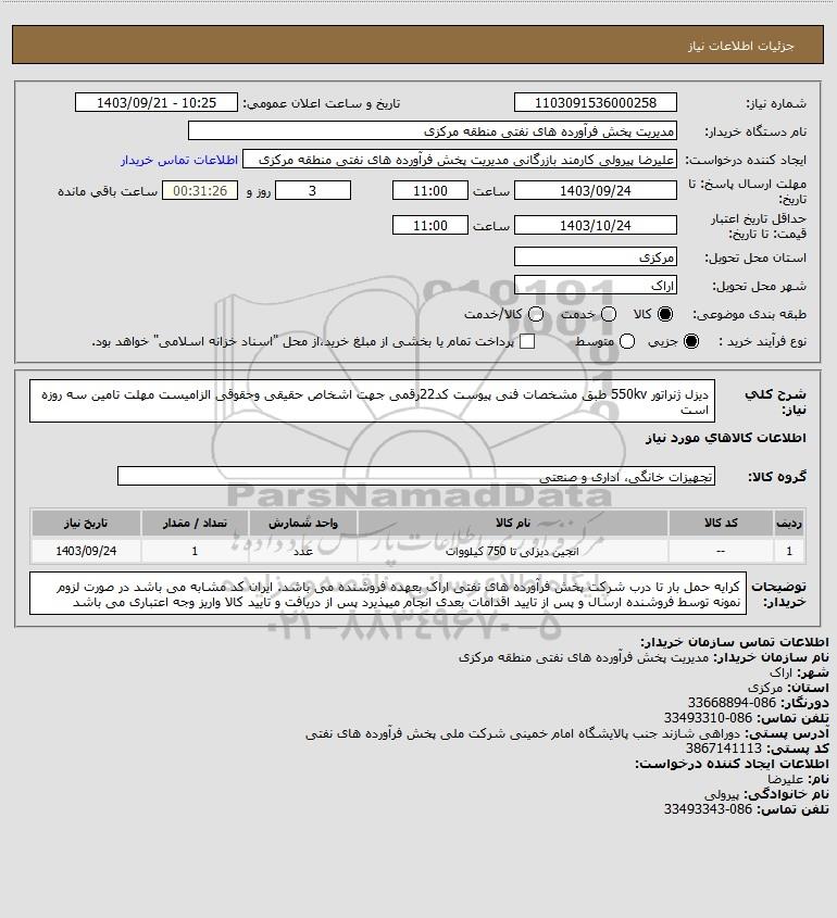 نام دستگاه خریدار:مدیریت پخش فرآورده های نفتی منطقه مرکزی