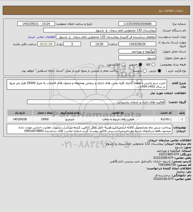 نام دستگاه خریدار:بیمارستان 132 تختخوابی امام سجاد ع یاسوج