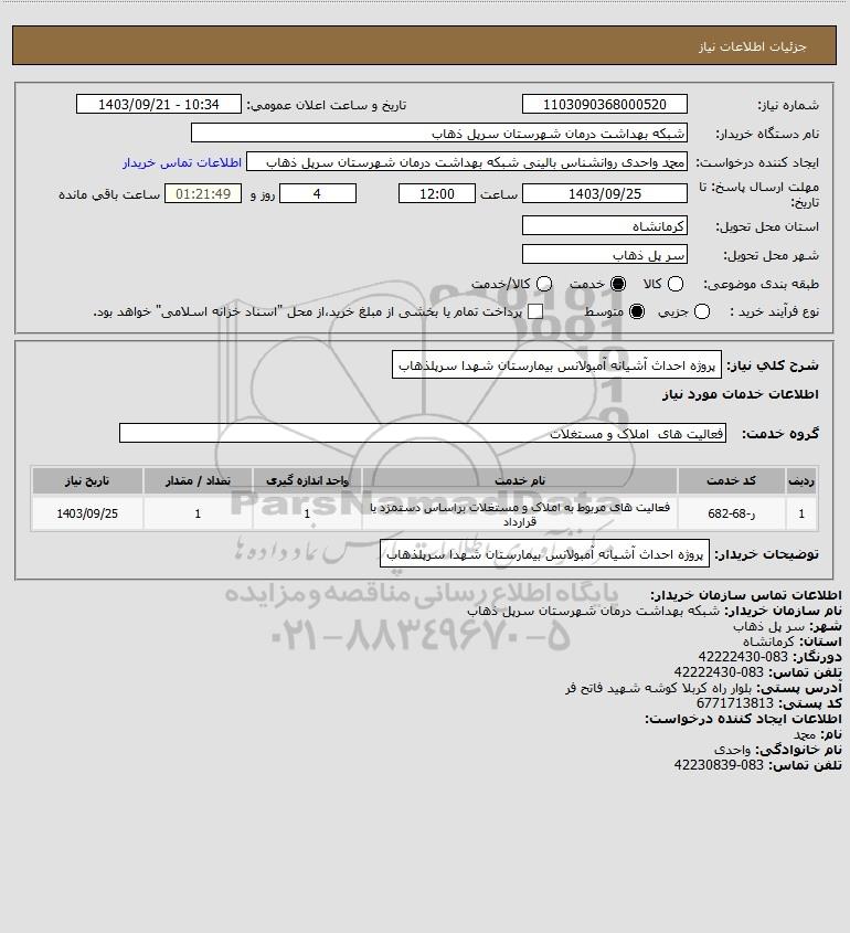 توضیحات خریدار:پروژه احداث آشیانه آمبولانس بیمارستان شهدا سرپلذهاب