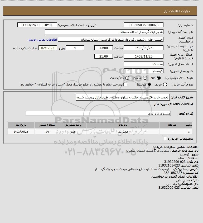 نام دستگاه خریدار:شهرداری گرمسار استان سمنان