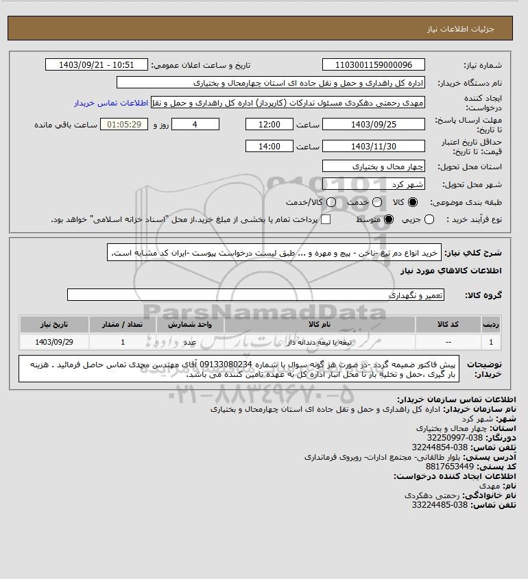 نام دستگاه خریدار:اداره کل راهداری و حمل و نقل جاده ای استان چهارمحال و بختیاری