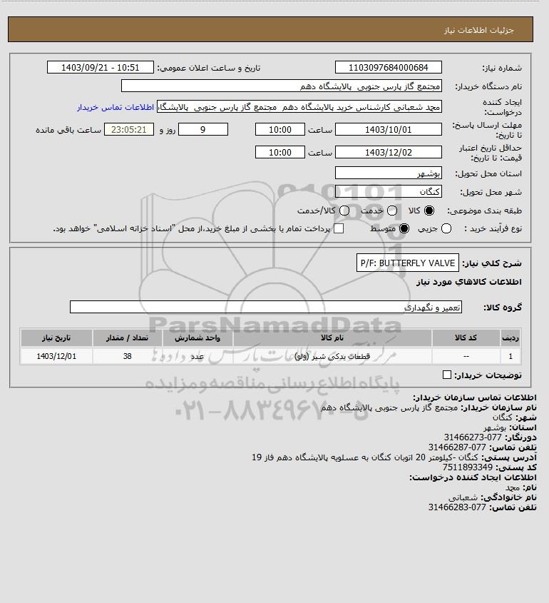 شرح کلی نیاز: P/F: BUTTERFLY VALVE