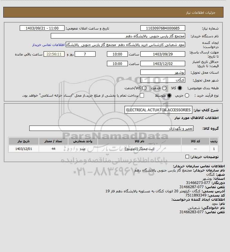 شرح کلی نیاز: ELECTRICAL ACTUATOR ACCESSORIES