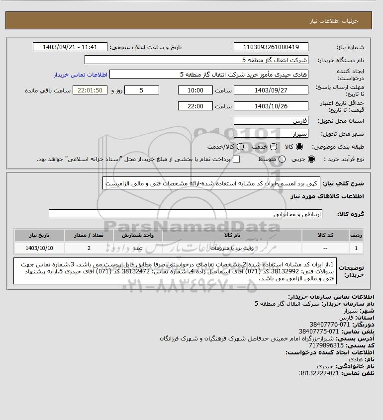 نام دستگاه خریدار:شرکت انتقال گاز منطقه 5