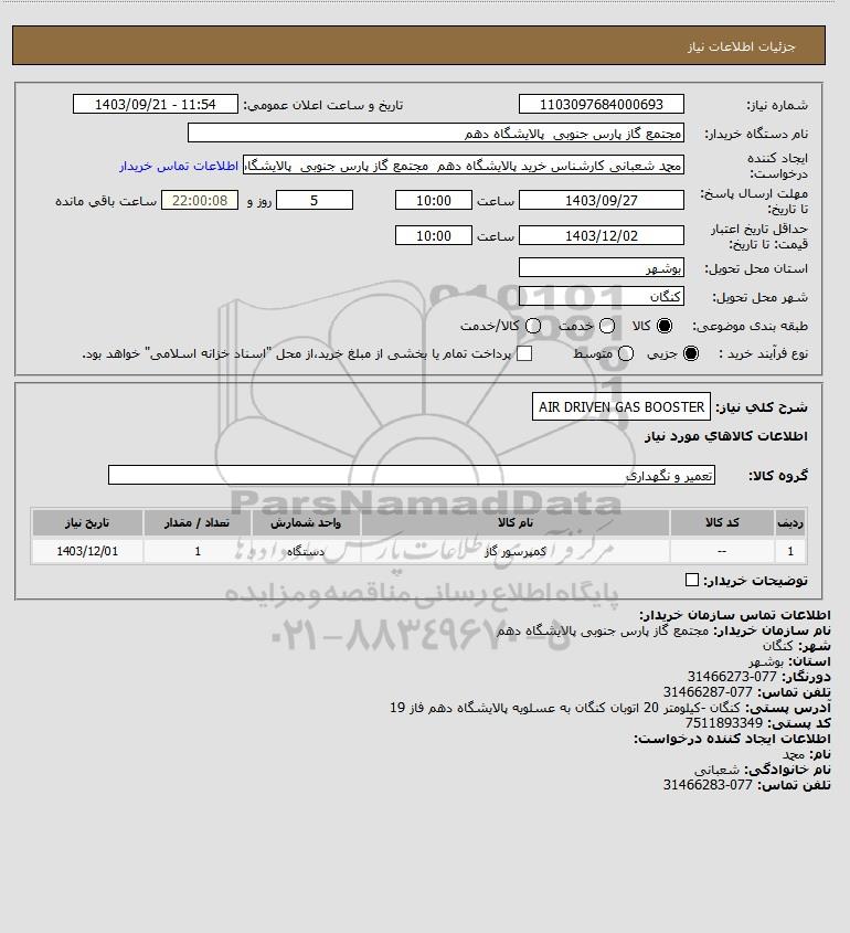 شرح کلی نیاز: AIR DRIVEN GAS BOOSTER