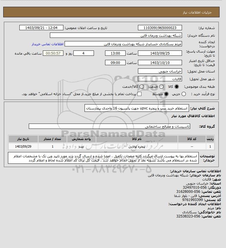 استعلام استعلام خرید درب و پنجره upvc جهت پانسیون 16 واحدی بیمارستان, استعلام استعلام خرید درب و پنجره upvc جهت پانسیون 16 واحدی بیمارستان
