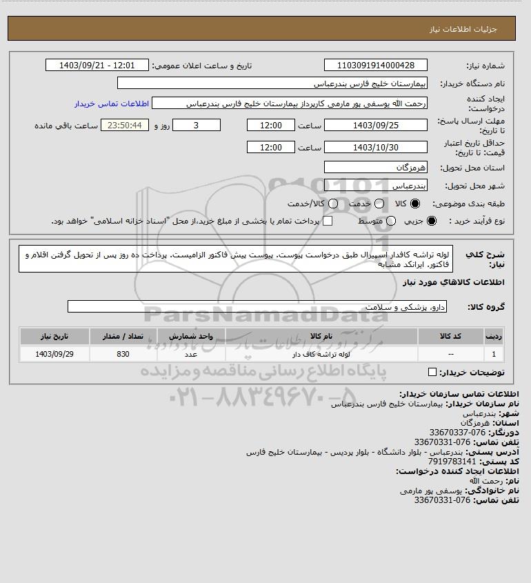 نام دستگاه خریدار:بیمارستان خلیج فارس بندرعباس