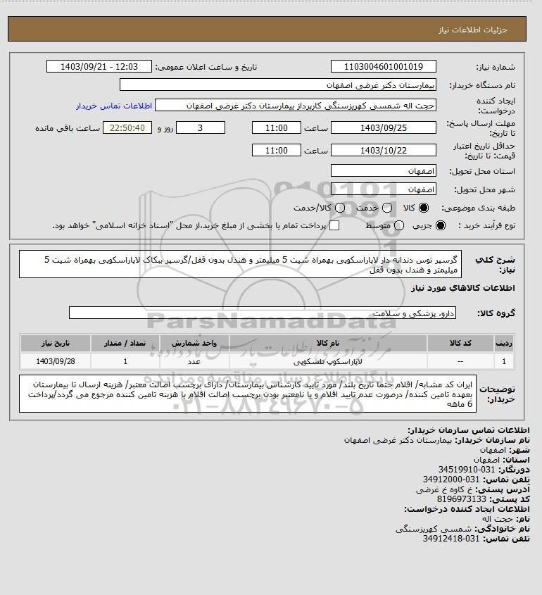 | 1 | -- | لاپاراسکوپ تلسکوپی | عدد | 1 | 1403/09/28 |