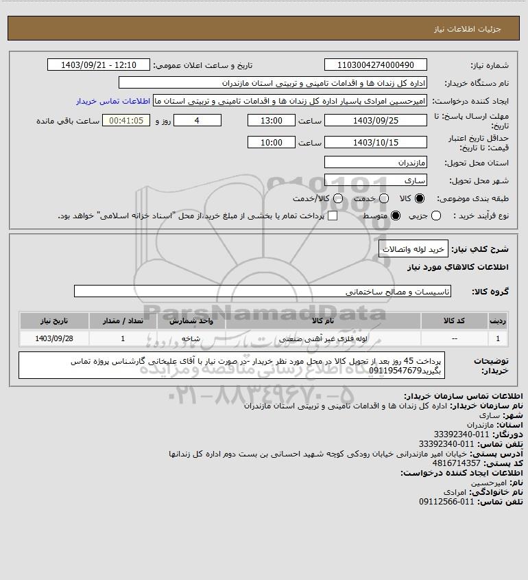 نام دستگاه خریدار:اداره کل زندان ها و اقدامات تامینی و تربیتی استان مازندران