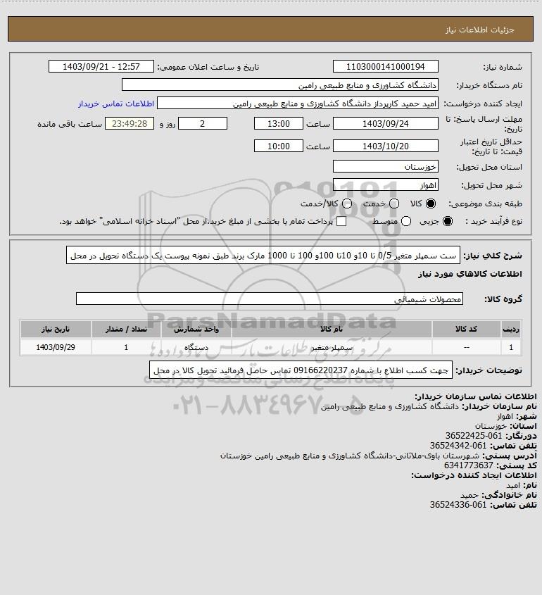 نام دستگاه خریدار:دانشگاه کشاورزی و منابع طبیعی رامین