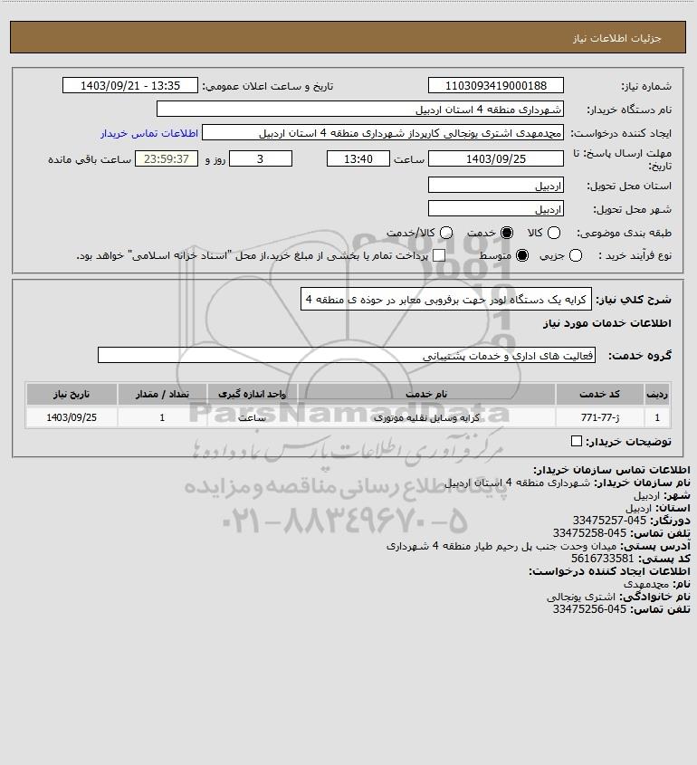 نام دستگاه خریدار:شهرداری منطقه 4 استان اردبیل