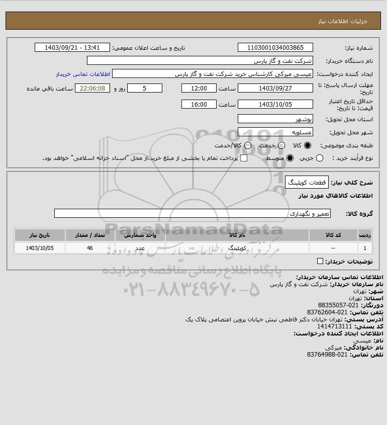 شرح کلی نیاز: قطعات کوپلینگ