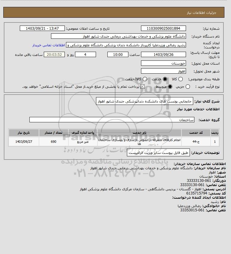 شرح کلی نیاز: جابجایی یونست های دانشکده دندانپزشکی جندی شاپور اهواز