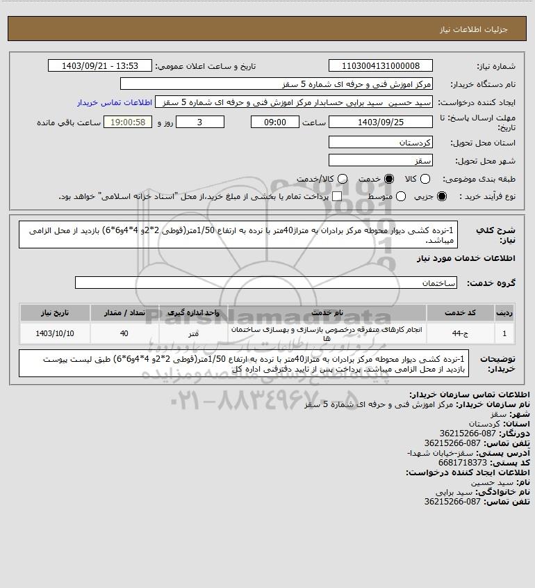 نام دستگاه خریدار:مرکز اموزش فنی و حرفه ای شماره 5 سقز