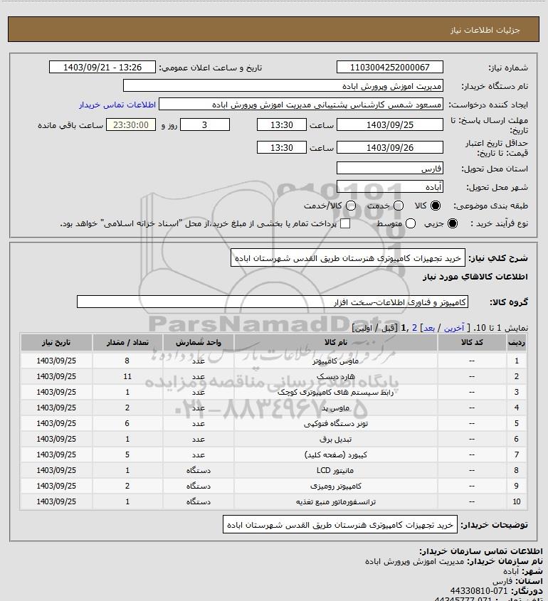 استعلام خرید تجهیزات کامپیوتری هنرستان طریق القدس شهرستان اباده, استعلام خرید تجهیزات کامپیوتری هنرستان طریق القدس شهرستان اباده