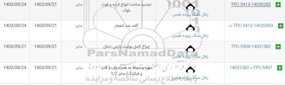 | TPC-5408-14031382 | زغال سنگ پروده طبس | چراغ کامل یونیت پارس دنتال | سایر | 1403.9.21 |