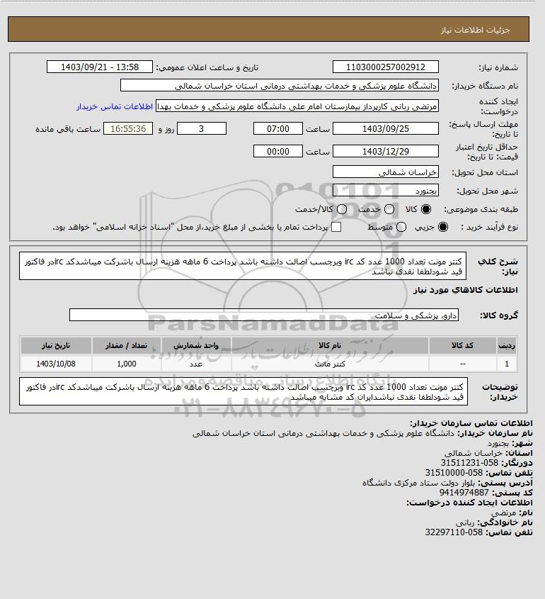 نام دستگاه خریدار:دانشگاه علوم پزشکی و خدمات بهداشتی درمانی استان خراسان شمالی